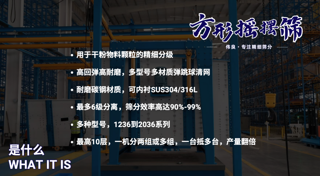 • 然后,經過初步篩選的砂進入偉良方形搖擺篩,普遍客戶會選擇大的機型2036型號,6層/8層/或10層,它夠精確地篩選出符合要求的砂粒粒徑范圍,確保顆粒級配符合工程標準。